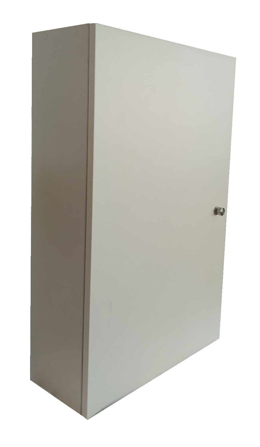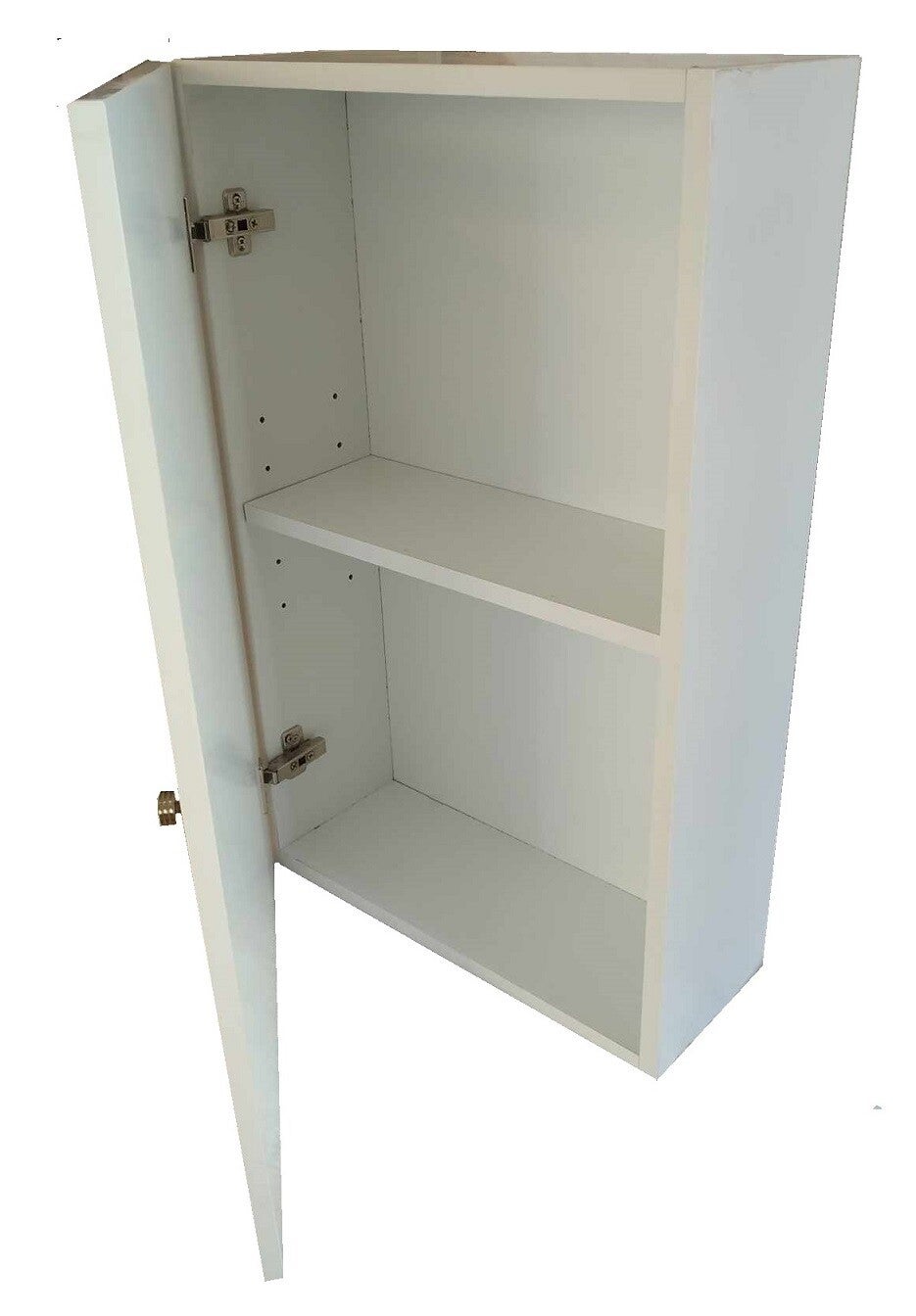 Ντουλάπι κρεμαστό από μελαμίνη, η οποία προσφέρει ανθεκτικότητα στα γρατζουνίσματα, στην τριβή και στα διαβρωτικά, σε λευκή απόχρωση.
