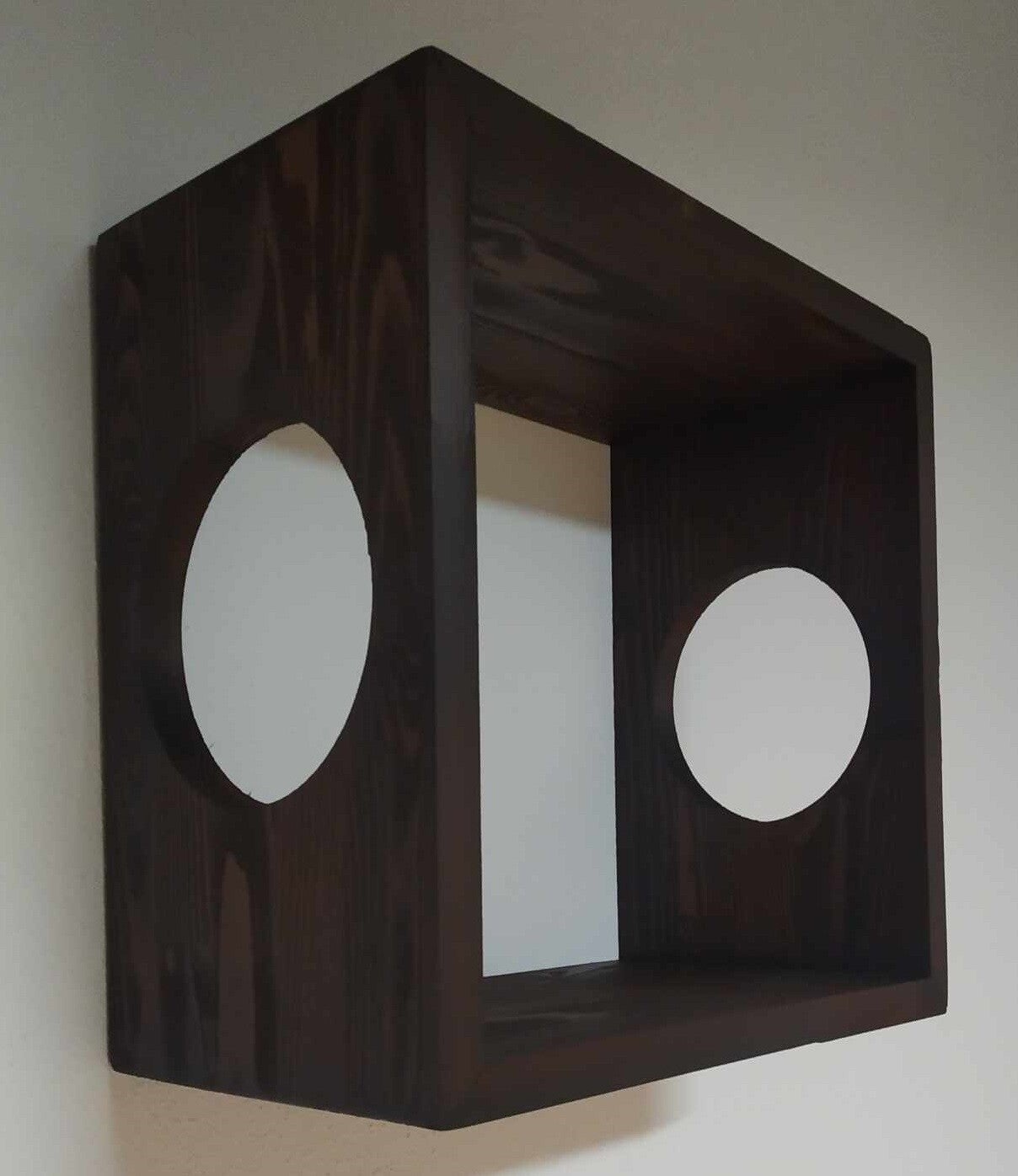 Ξύλινο χειροποίητο επιτοίχιο τετράγωνο ράφι γάτας, με άνοιγμα, από σουηδικό ξύλο.