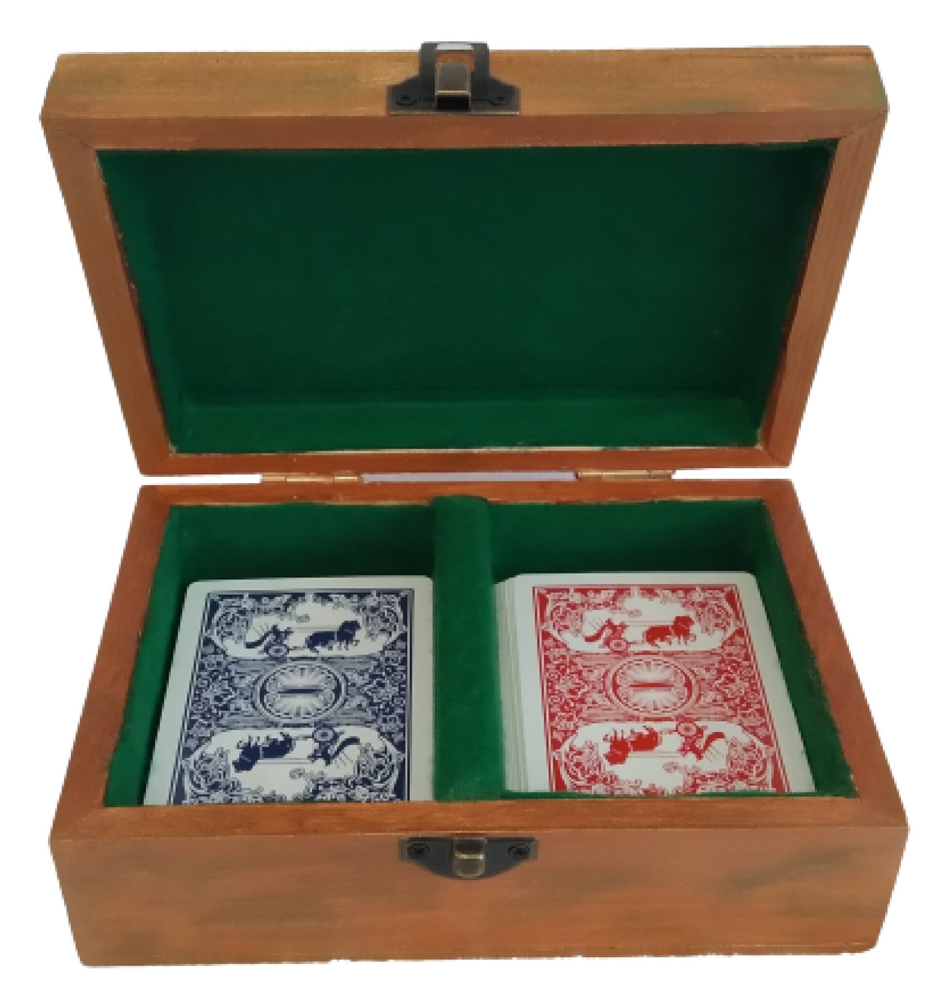 Χειροποίητο ξύλινο κουτί με τεχνική ντεκουπάζ με 2 τράπουλες. Για να έχετε πάντα τακτοποιημένες τις τράπουλες για το αγαπημένο σας παιχνίδι.