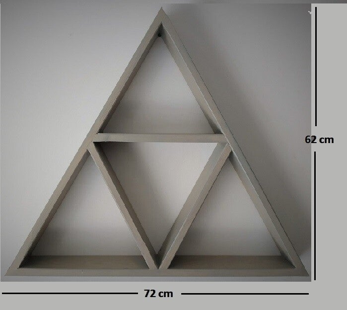Ξύλινο χειροποίητο ράφι τοίχου με τρίγωνο σχέδιο από ατόφιο ξύλο έλατο σε δύο αποχρώσεις Καρυδιάς και Grey βαμμένα με οικολογικά χρώματα φιλικά για τα παιδιά.